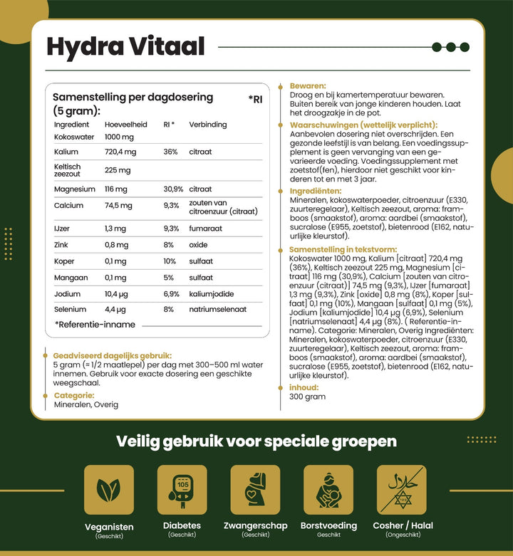 • Compleet elektrolytenprofiel met 11 mineralen en sporenelementen